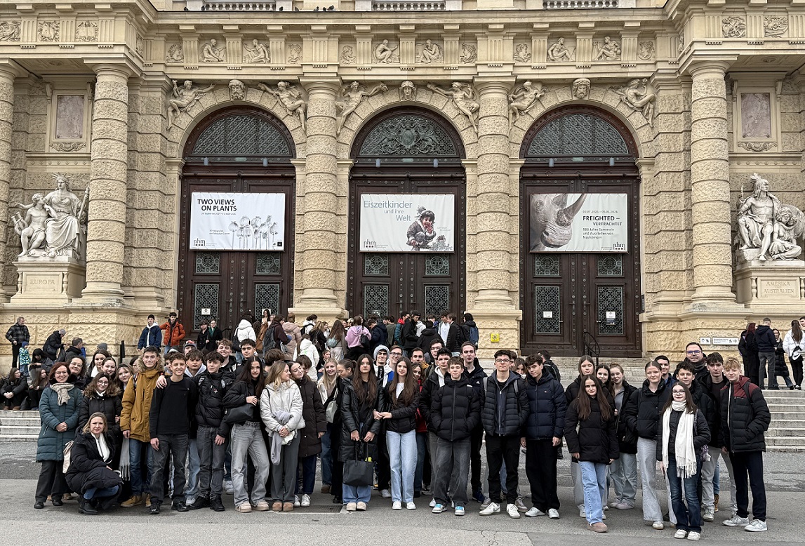 Mikulás napján egy bécsi adventi kiránduláson vettünk részt, amire Szegedről indultunk. Már az utazás is jó hangulatban telt, nevetgéltünk, beszélgettünk, és mindannyian nagyon vártuk, hogy felfedezhessük Ausztria fővárosát. Elsőként a Bécsi Természettudományi Múzeumba látogattunk el, ami mindannyiunkat lenyűgözött. Hatalmas kiállítótermekben sétáltunk, ahol óriási dinoszaurusz-csontvázakat, különleges ásványokat és érdekes állatpreparátumokat láthattunk. Sok új dolgot megtanultunk, és közben igazán élveztük, hogy ilyen szép környezetben lehetünk együtt. A múzeum után egy elegáns, hangulatos sétálóutcán folytattuk utunkat (Kärntner Straße). Mindkét oldalon szebbnél szebb üzletek, csillogó kirakatok és apró kávézók sorakoztak. A karácsonyi díszek és fényfüzérek mindenhol ott voltak, így az egész város igazi ünnepi hangulatot árasztott. A hatalmas épületek, a nyüzsgő utcák és a város eleganciája mindannyiunkat elbűvölte. Több vásárt meglátogattunk, majd a nap végén a Christkindlmarkt-ot kerestük fel a Rathausplatz-on. A vásár csodaszép volt: mindenhol fények, illatok, zenék és mosolygó emberek vettek körül minket. A finom sütemények, a forró italok és a gyönyörű díszek láttán mindenki karácsonyi hangulatba került. Ez a kirándulás nemcsak izgalmas és érdekes volt, hanem igazán kellemes kikapcsolódás is. Olyan nap volt ez, amire mindannyian jó szívvel fogunk emlékezni.