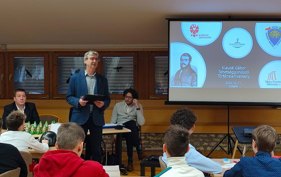 2025. december 11-én ötödik alkalommal rendeztük meg a Szegedi Radnóti Miklós Kísérleti Gimnázium és a Móra Ferenc Múzeum által közösen szervezett Klauzál Gábor Tehetséggondozó Történelemverseny döntőjét.