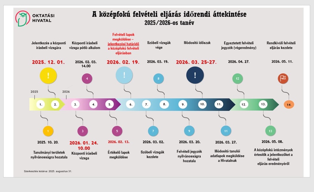 - Február 19. (csütörtök): jelentkezési határidő; az általános iskolák, illetve az egyéni jelentkezők az Oktatási Hivatal elektronikus felületén jelentkezhetnek.