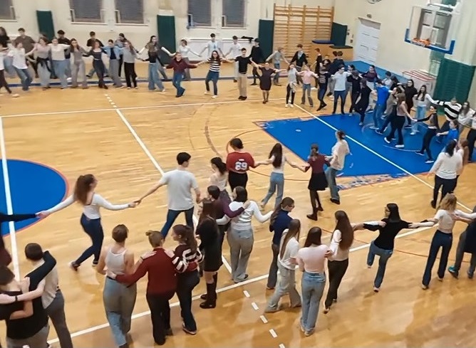 Ismét diáktáncház volt a Radnótiban január 29-én! A csodálatos moldvai élőzenét a jól ismert Népzenei Kamaraműhely muzsikusai húzták-fújták, ezúttal kilencfős(!) zenekar adta a talpalávalót! A táncokat betanította és az énekeket előadta Barta Csilla népművész.